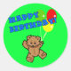 Adesivo Redondo Feliz aniversário Teddy Bear com Balões