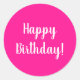 Adesivo Redondo Feliz Aniversário Típica Branca Rosa Quente