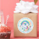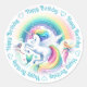 Adesivo Redondo Feliz Aniversário Unicórnio e Sereias