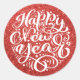 Adesivo Redondo Feliz Ano Novo Caligrafia Moderna Brilho Vermelho