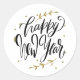 Adesivo Redondo Feliz Ano Novo Caligrafia Moderna Grinalda Preta