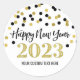 Adesivo Redondo Feliz ano novo de Confetti Dourado Negro 2023