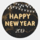Adesivo Redondo Feliz ano novo String Luzes Douradas Balões Negros