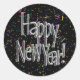 Adesivo Redondo Feliz ano novo - Texto Prateado com Confetti Preto