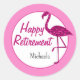 Adesivo Redondo Feliz aposentadoria cor-de-rosa flamingo Texto per