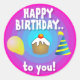 Adesivo Redondo Feliz Balão de Aniversário, Bolo e Boné