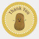 Diga obrigado. Um desenho animado e marrom feliz batata com um sorriso feliz no rosto. Altere o plano de fundo para qualquer cor escolhida clicando em personalizar.