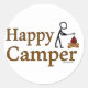 O ditado alegre camper com uma figura de palito assando marshmallows sobre uma fogueira.