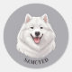 Este adesivo apresenta uma imagem IA de belos brancos, samozados sobre o fundo da cinza. Personalize-o com o nome ou fotografia do seu animal de estimação.