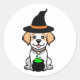 Adesivo Redondo Feliz cão Engraçado é uma bruxa