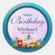 Adesivo Redondo Feliz Comboio De Aniversário Com Bichinhos