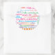 Este adesivo alegre e divertido vai iluminar o aniversário de qualquer um! A frase espanhola " Feliz cumpleaños!" ("Feliz aniversário!") está em muitas fontes e cores brilhantes, formando uma nuvem de palavras. Perfeito para celebrar qualquer idade, e excelente para auto-falantes, estudantes ou professores espanhóis...ou qualquer um! E não esqueça o cartão ou cartão postal!