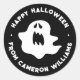 Os adesivos do Dia das Bruxas com um fantasma branco assustador e um texto personalizável "Feliz Dia das Bruxas" e o seu nome. Texto branco em um fundo de cor preto ou personalizado.