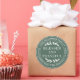 Adesivo de endereço de retorno redondo Feliz Dia de Ação de Graças com seu nome e endereço em tipografia estilosa branca apresenta o texto ABENÇOADO E GRATO em tipografia manuscrita com um toque estiloso de folhagem rústica em um fundo verde. Também ótimo para um agradecimento de negócios aos clientes! Basta adicionar o nome e endereço da sua empresa ou site. Exclusivamente projetado para você pelo Happy Dolphin Studio.