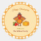 Adesivo Redondo Feliz Dia de Ação de Graças Turquia Pumpkin Amarel