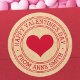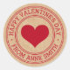 Adesivos do Dia dos Namorados com um coração vermelho e texto "Feliz Dia dos Namorados" com nome personalizado em um fundo de papel Kraft impresso. Use como selos de envelope, adesivos para presentes e brindes, embalagens de produtos, artesanato e scrapbooking etc