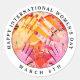 Feliz Dia Internacional da Mulher, 8 de março, Clássico da Ronda. Celebre a irmandade deste Dia Internacional da Mulher, no dia 8 de março. Espalhe uma mensagem de amor e apoio com este bonito adesivo do Dia Internacional da Mulher. Mostre este símbolo brilhante e feliz da energia feminina neste dia especial para mulheres em todo o mundo. Perfeito para você, sua mãe, sua irmã, e seus amigos também. Todo texto é totalmente personalizável, basta pressionar o botão "Personalizar o texto" para alterar as coisas, se desejar. Mostre a si mesmo e às suas irmãs algum amor por esta mensagem de solidariedade feminina. Abrace o dia e seja dono dele, garota, e tenha um Feliz Dia da Mulher!