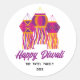 Adesivo Redondo Feliz Diwali Púrpura Lanterna Amarelo Cor-de-Rosa