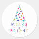 Esta design de árvore de Natal moderna e chica apresenta um triângulo prateado com bolhas de cor brilhante penduradas na árvore. As cores das lâmpadas incluem verde limão, laranja, rosa, roxo, ciano e azul. Este adesivo funciona como um selo de envelope e uma etiqueta de presente. Brilhante colorido, é certo que se destaca da multidão de vermelho e verde. Dê às suas férias uma reviravolta moderna. A festa e o decoro de férias estão disponíveis na minha loja. Tenha um ajustado de paisagem de férias para uma revista com este fabuloso design.