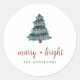 Feliz e Brilho | Vinheta redonda clássica árvore de Natal Boho