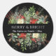 Este belo adesivo de feriado quadrado apresenta galhos rústicos exuberantes, bagas vermelhas, sobre fundo preto simples com texto elegante branco.