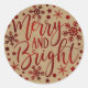 Adesivo Redondo Feliz e Flocos de neve vermelhos brilhantes Natal