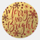 Adesivo Redondo Feliz e Flocos de neve vermelhos brilhantes Natal
