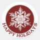 Adesivo Redondo Feliz Feriados de Papel Vermelho Floco de Neve