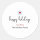 O Sticker mostra um coração vermelho, simples e bonito no floco de neve com um roteiro moderno de "feriados felizes" em branco. Personalize-o adicionando seu nome de família e pode escolher qualquer tamanho, se desejar. Perfeito para simples autocolante ou selo de envelope a utilizar durante a época de Natal quando se enviam presentes e cartões de natal.