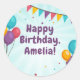Adesivo Redondo Feliz Festa de Aniversário - Balões Azuis Claro