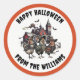 Feliz palco clássico do partido de galinha do Dia das Bruxas Alugue seus hóspedes com favoritos para festas adoráveis e inesquecíveis na sua celebração do Dia das Bruxas! Este adesivo simples e divertido é a escolha perfeita para qualquer evento, especialmente para uma festa de fantasia. Apresentando um charmoso design preto, cor de laranja e branco, ele mostra a tipografia de granja vintage que adiciona um toque nostálgico e autêntico. Imagem três adoráveis galinhas vestidas de bruxas, prontas para se juntar às festividades, com uma velha casa assombrada no fundo. Este adesivo redondo clássico não é apenas um detalhe decorativo; é uma peça que encantará e entreterá todos os seus convidados. Personalize sua festa de Halloween com este adesivo único que combina espírito festivo com um toque de humor e criatividade. Transforme cada favor partidário em uma manutenção especial que seus hóspedes adorarão levar para casa!