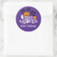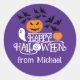 Legal, divertido e único adesivo do Halloween Provider para qualquer um. Com texto roxo personalizado Feliz Halloween e seu nome. Bolsas de orandeiro do Dia das Bruxas Laranja, fantasmas brancos e morcegos pretos. Divertimento bonito e um padrão meio assustador para crianças de todas as idades.