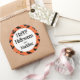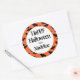 Feliz Halloween Bat Pattern Kids Personalizados Stickers. Anexar a guloseimas ou favoritos para festas para festas de Halloween. Personalize adesivos com nome e Feliz Halloween ou edite texto para mudar. Fundo laranja com padrão de morcegos pretos. Círculo branco no centro com dentro de texto. Veja nossos outros materiais divertidos e assustadores para a festa do Dia das Bruxas.