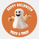 Adicione um susto festivo às suas celebrações de Halloween com nosso adesivo redondo clássico "Feliz Halloween - Doce ou Travessura"! Perfeito para lembrancinhas de festa, sacos de doces, envelopes, convites ou artesanatos sazonais, este adesivo fofo e assustador traz charme e calafrios em um design divertido.