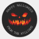 Abóbora Feliz Halloween. Um adesivo assustador de abóbora. Perfeito para embrulho de presente, favoritos para festas.