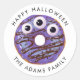 Adesivo Redondo Feliz Halloween Roxo, Rosquinha de Monstro de Três