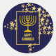 Adesivo Redondo FELIZ HANUKKAH | Menorah | Estrelas Douradas | MAR