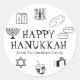 Feliz Hanukkah, personalize o nome da família, favoreça adesivos Feliz Hanukkah, Feliz Chanukah, Hanukkah Sameach!, Chag Sameach!, Chag Urim Sameach! Preto e Branco