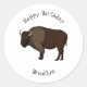 Adesivo Redondo Feliz ilustração de búfalo bisonte americano