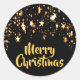 Adesivo Redondo Feliz Natal a preto com estrelas brilhantes