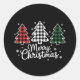 Adesivo Redondo Feliz Natal Árvore Buffalo Xadrez Vermelha Verde