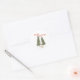 Você vai adorar esses adesivos de Natal e feriados! Cena de inverno com um gnomo escandinavo de pernas finas segurando um pássaro azul na frente de pinheiros. Em tipografia vermelha bonita está a citação "Feliz Natal".