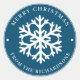 Adesivo Redondo Feliz Natal Azul redondo Branco Floco de Neve