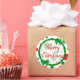 Adesivo Redondo Feliz Natal Branco, Bolinhas Verdes Vermelhas