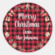 Adesivo Redondo Feliz Natal Do Nome Dourado Buffalo Red Xadrez