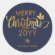 Adesivo Redondo Feliz Natal Dourado e Azul Personalizado Feriado