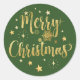 Adesivo Redondo Feliz Natal Dourado, estrelas e flocos de neve
