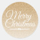 Um moderno e falso glitter ombre Merry Christmas sticker ou envelope selo. O padrão ombre dourado brilha sobre um fundo branco. O texto "Feliz Natal" a preto é escrito em moderno. Vestido perfeito de Natal com padrão moderno, brilho, luxo e brilho.