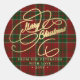 Adesivo Redondo Feliz Natal dourado vermelho verde xadrez tartã