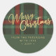 Adesivo Redondo Feliz Natal em escrita rústica em xadrez vermelho